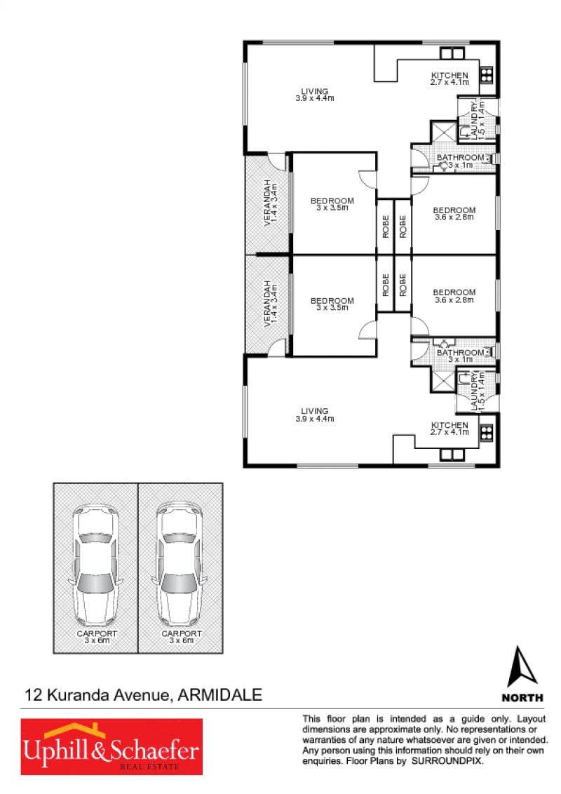 There is a double carport prividing car accomodation for each unit and a garden shed. Huge block of 923.1m2.